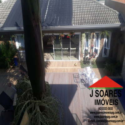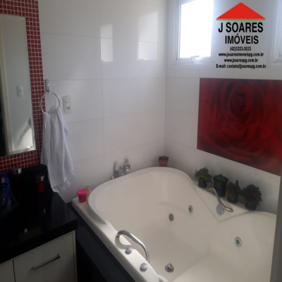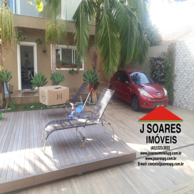 EXCELENTE SOBRADO EM ALTO PADRÃO = CONTENDO = 5 QUARTOS SENDO 3 SUÍTES COM SACADA, 1 HIDROMASSAGEM, 1 CLOSET, SALA DE JANTAR, SALA DE ESTAR, COM LAREIRA, SALA DE TV, ESCRITÓRIO, COZINHA C/ ARMÁRIOS, DESPENSA,  3 LAVABOS, 4 BANHEIROS SOCIAIS, ÁREA DE SERVIÇO, AMPLO ESPAÇO GOURMET, PISCINA, GARAGEM P/ 5 CARROS.